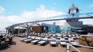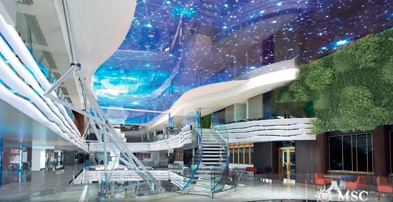 Pasear por la Promenade interior, en la cubierta 6 tendrá un techo con una impresionante instalación en forma de cúpula LED. Y el Promenade exterior, situada en la cubierta 8, con un paseo al aire libre de mas de 90 metros, que es lo mas futurista del barco.