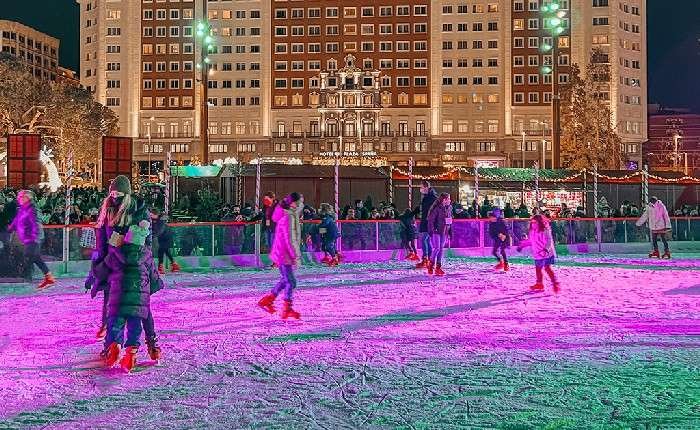 Además, muchas otras pistas de hielo serán instaladas en el centro de la ciudad estos días. Ya sea en la de Plaza de España, con su gran árbol de Navidad de fondo, o en el Palacio de Cibeles, no hay nada más navideño y es un plan muy divertido para familias, grupos de amigos o parejas.