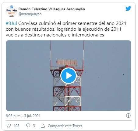 La información fue divulgada en su cuenta de Twitter, en donde destacó que el Consorcio Venezolano de Industrias Aeronáuticas y Servicios Aéreos, seguirá expandiendo los destinos nacionales e internacionales para el disfrute de los usuarios.